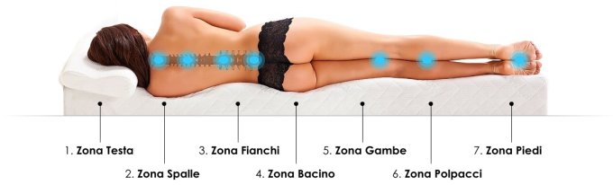 | Struttura Coprimaterasso Bio-Magnetico | Struttura Memory Sensitive | PRESSIONE SU SETTE ZONE DIFFERENZIATE |
